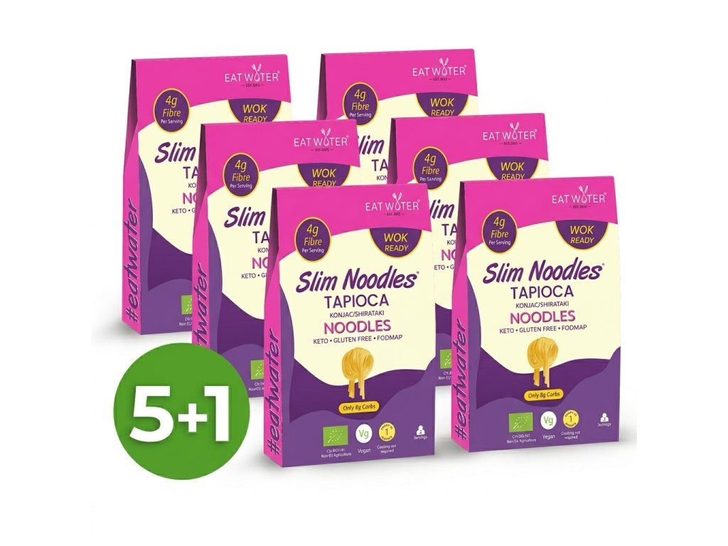 Tapiokovo-konjakové přílohy ve tvaru nudlí - Slim Pasta druhé generace - mají o 90 % kalorií méně než běžné nudle. Jsou hotové za jednu minutu. Nevaří se, neproplachují se, neplavou v nálevu. Nemají aroma. Jsou nízkokalorické. Skvělé pro vaši redukční dietu. Vhodné pro vegany. Bez lepku. Obsahují vlákninu.