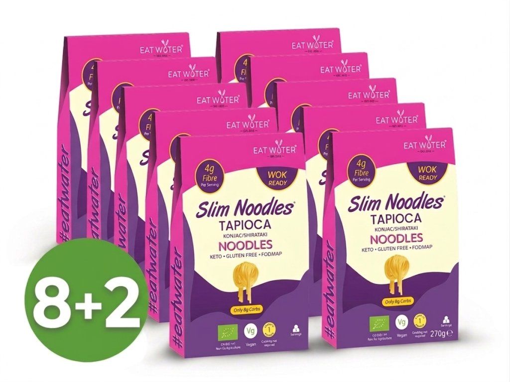 Tapiokovo-konjakové přílohy ve tvaru nudlí - Slim Pasta druhé generace - mají o 90 % kalorií méně než běžné nudle. Jsou hotové za jednu minutu. Nevaří se, neproplachují se, neplavou v nálevu. Nemají aroma. Jsou nízkokalorické. Skvělé pro vaši redukční dietu. Vhodné pro vegany. Bez lepku. Obsahují vlákninu.