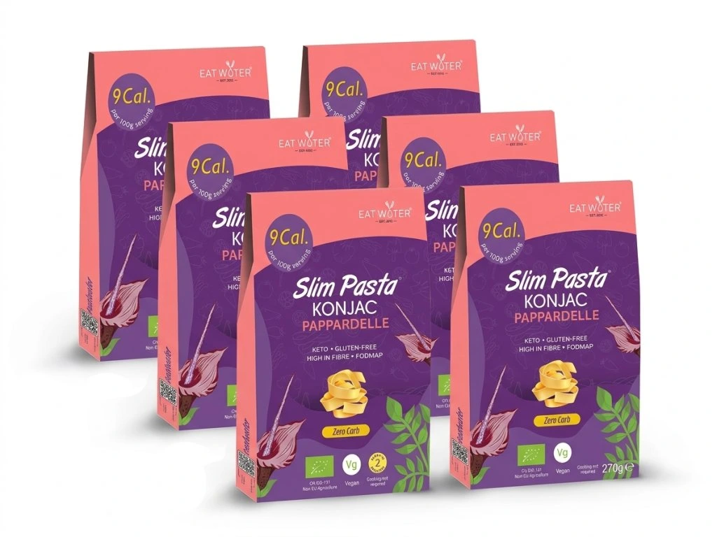 Konjakové pappardelle BIO v nálevu se nevaří a jsou připravené k okamžité konzumaci. Mají neutrální chuť a obsahují vlákninu.